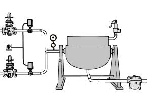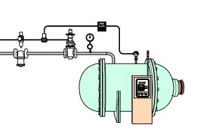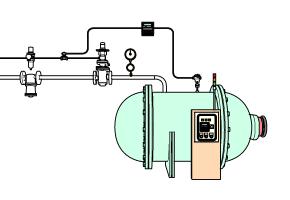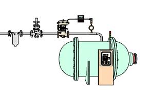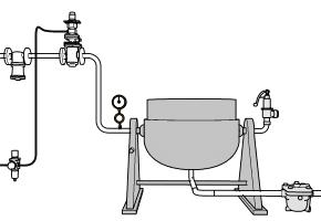The secondary side pressure can be set at two points: the motive air supply and the built-in adjustment screw. Steam supply can be maintained even with motive air cut off (in case of emergencies).